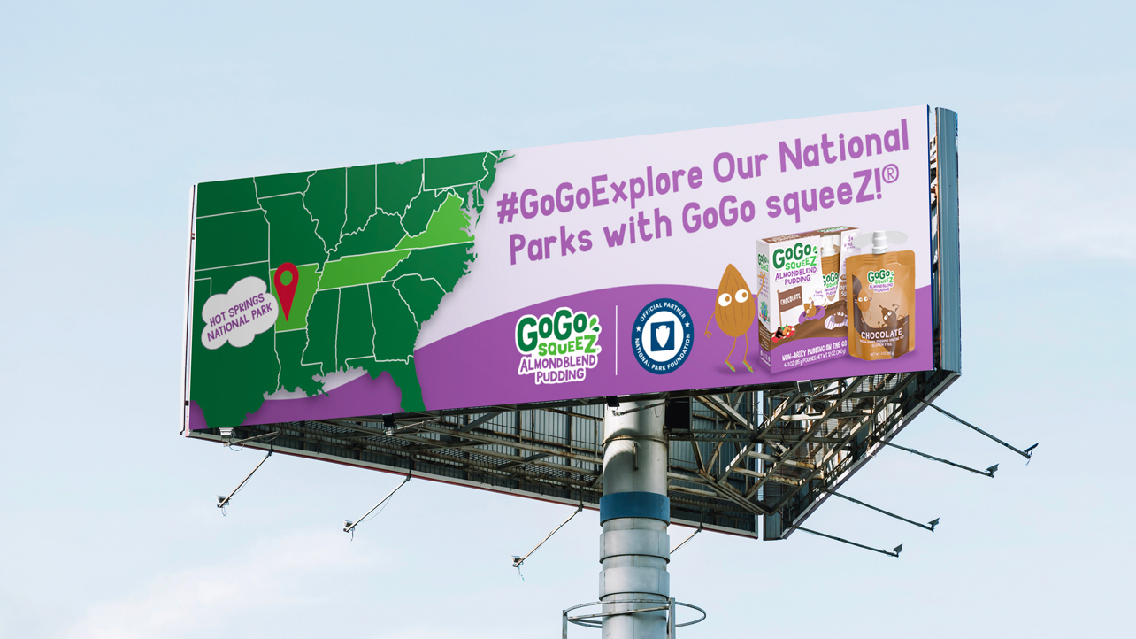 In the summer of 2021, GoGo squeeZ brand ambassadors embarked on the GoGoExplore Tour. I collaborated with vendors to design geo-targeted billboards and an airstream trailer that journeyed across the country to National Parks for sampling events. It was all about bringing the brand to life in the great outdoors, and connecting with consumers in unforgettable settings.